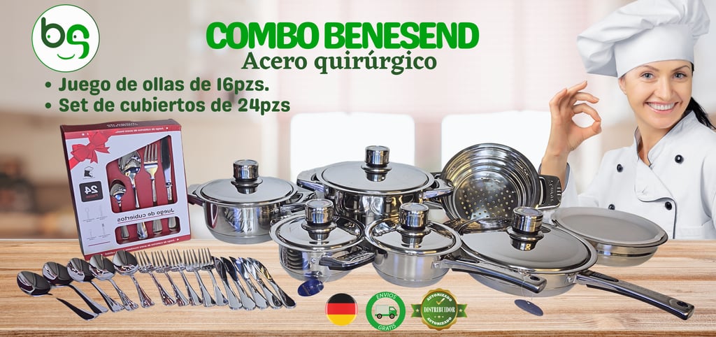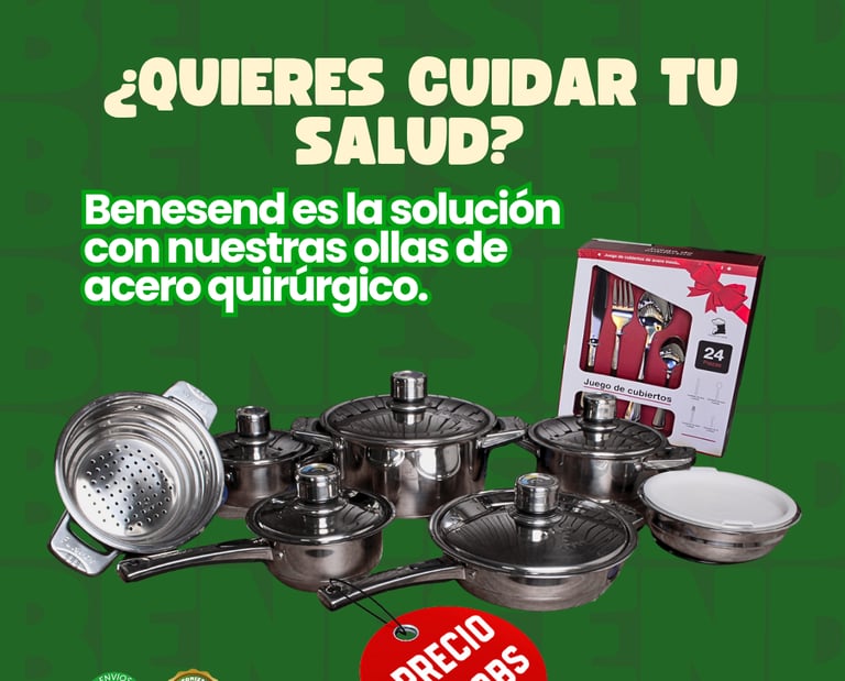 Descubre el juego de ollas de acero quirúrgico Benesened para una cocina sin preocupaciones.
