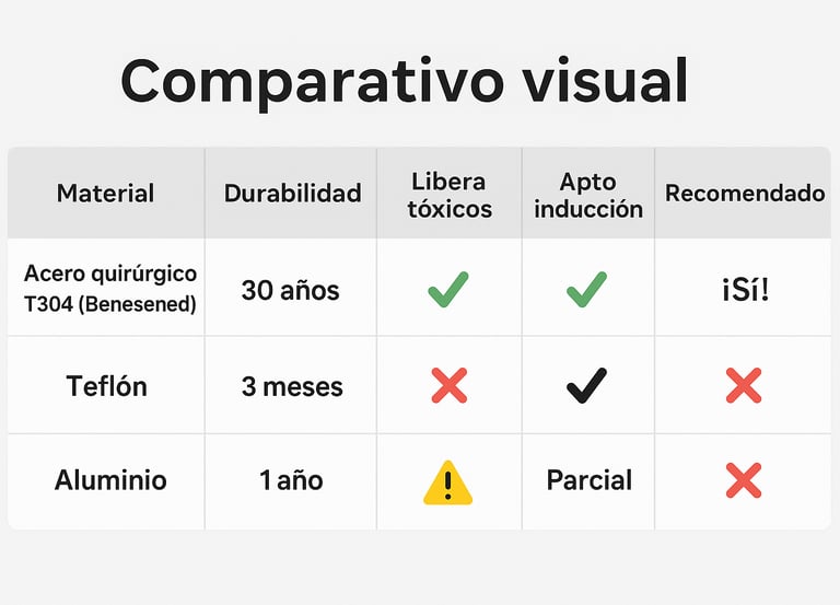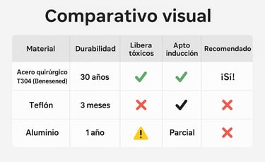 🔬 ¿Por qué elegir acero quirúrgico y no teflón o aluminio?
